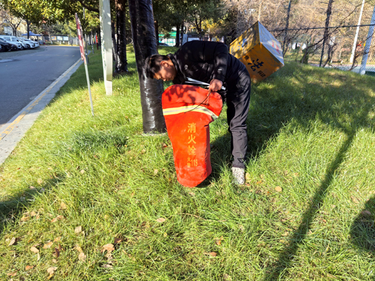 細(xì)心的業(yè)主不難發(fā)現(xiàn),樹木已悄然穿上整齊的“冬裝”。物業(yè)工作人員有條不紊地對喬木根部進(jìn)行涂白處理。這層白色“防護衣”不僅美觀,更是樹木越冬的“守護者”——它能有效反射部分陽光,減緩樹干因晝夜溫差過大而導(dǎo)致的凍裂風(fēng)險,同時清除樹皮縫隙中潛藏的害蟲及蟲卵,為來年春季樹木茁壯成長打下堅實基礎(chǔ)。