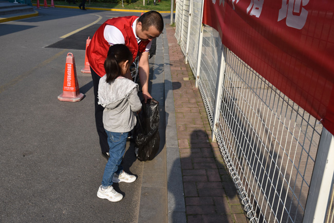 活動中,全體黨員干部、志愿者走進園區(qū)公舍開展志愿巡護,分發(fā)綠色出行環(huán)保宣傳單,開展生活垃圾分類的宣傳,動員引導(dǎo)園區(qū)居民著力踐行人與自然和諧共生和綠色發(fā)展理念,共同履行環(huán)保責(zé)任,形成集中宣傳效應(yīng)。同時沿途撿拾煙頭,每個人都充當(dāng)著城市環(huán)境的“顯微鏡”,“彎腰、蹲下、撿拾、站起”,一個個簡單而重復(fù)的動作,撿起了“文明”、凈化了“心靈”、整潔了城市。